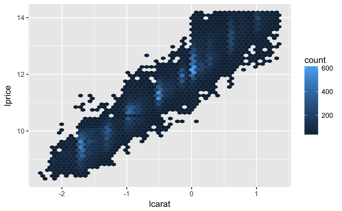 mutate(lprice = log2(price), lcarat = log2(carat))