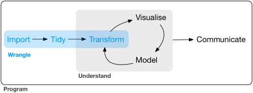 In this part of the book, you’ll learn about data wrangling, the art of getting your data into R in a useful form for visualisation and modelling. Data wrangling is very important: without it you can’t work with your own data! There are three main parts to data wrangling: